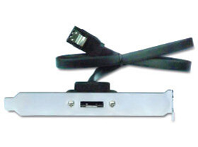 Záslepka dozadu skříně, která vyvádí jeden interní SATA konektor na eSATA konektor.