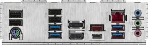 Zezadu má počítač konektory 1x USB 3.2 (20Gbps, 1x typ C), 1x USB 3.1 (10Gbps), 4x USB 3.0 (5Gbps), 4x USB 2.0, 1x PS/2, 2,5x Gbit síť, Jack konektory pro až 5.1 reproduktory, výstupy případné integrované grafiky (HDMI, DisplayPort).