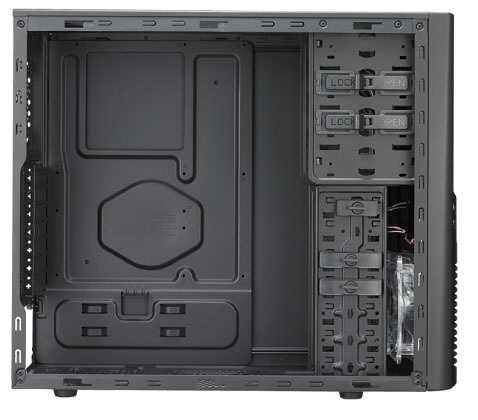 Má výborné možnosti chlazení. Dodává se se 120mm předním ventilátorem, který se stará o průtok vzduchu skříní. Na čelním panelu jsou vyvedeny 2 konektory USB a audio konektory (sluchátka a mikrofon).